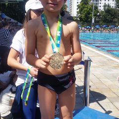 O aluno Thiago Steiner Pecorari, na categoria A, ganhou a medalha de prata decidida na braçada final. E o aluno Lucas Belmonte, último dos nossos alunos a se apresentar na categoria C, nadando crawl conquistou a medalha de ouro.